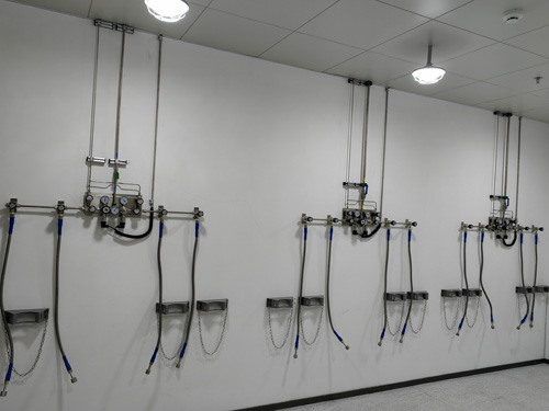 1.氣瓶間內壓強控制顯示屏與實驗所車間內的氣路電子設備之前使用的SS316LBA管實行接,供水管道鋪設內外表面光亮度為Ra<0.4umBA級供水管道鋪設。